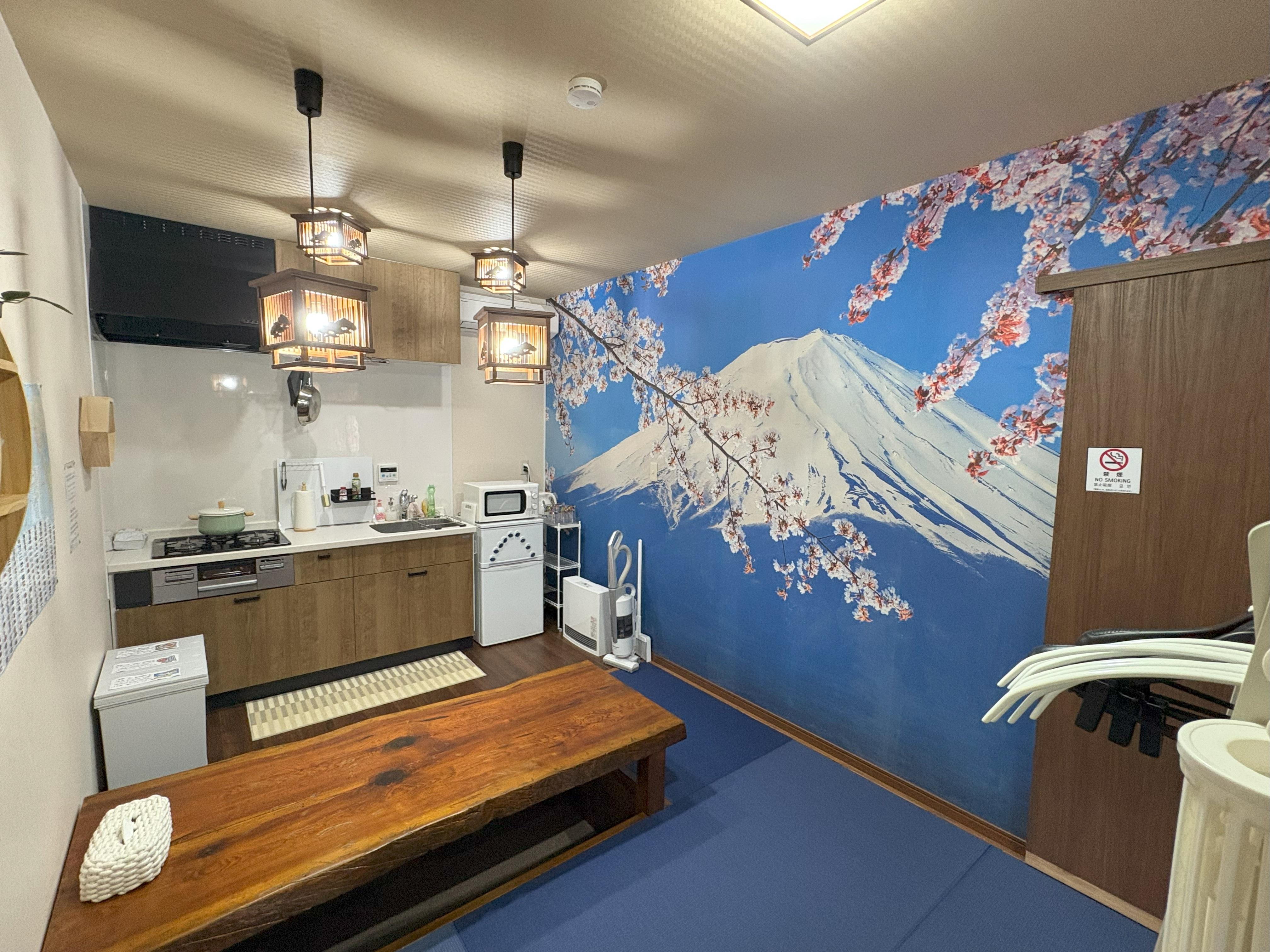 ダイニングには大きな富士山の画像を用意しました。記念撮影にもどうぞ